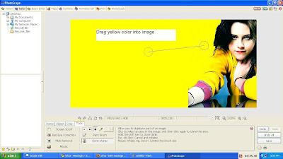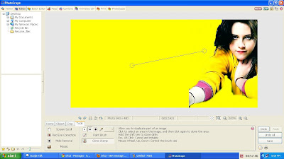 Open picture.Go to object> select 'mode line'.Choose the color wanted to paint the hair/Pull the arrow of whole opacity for left side.Leave the thickness above 10.Increase the zoom wellPaint the hair without loosening the mouse until ending